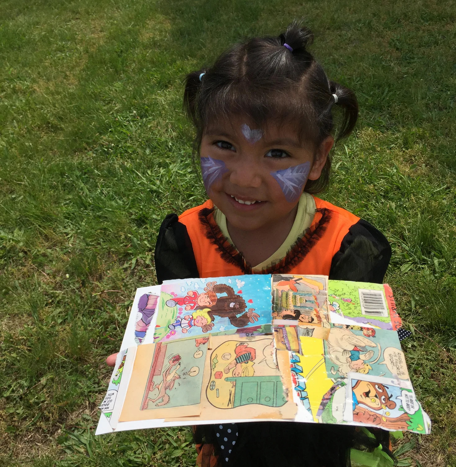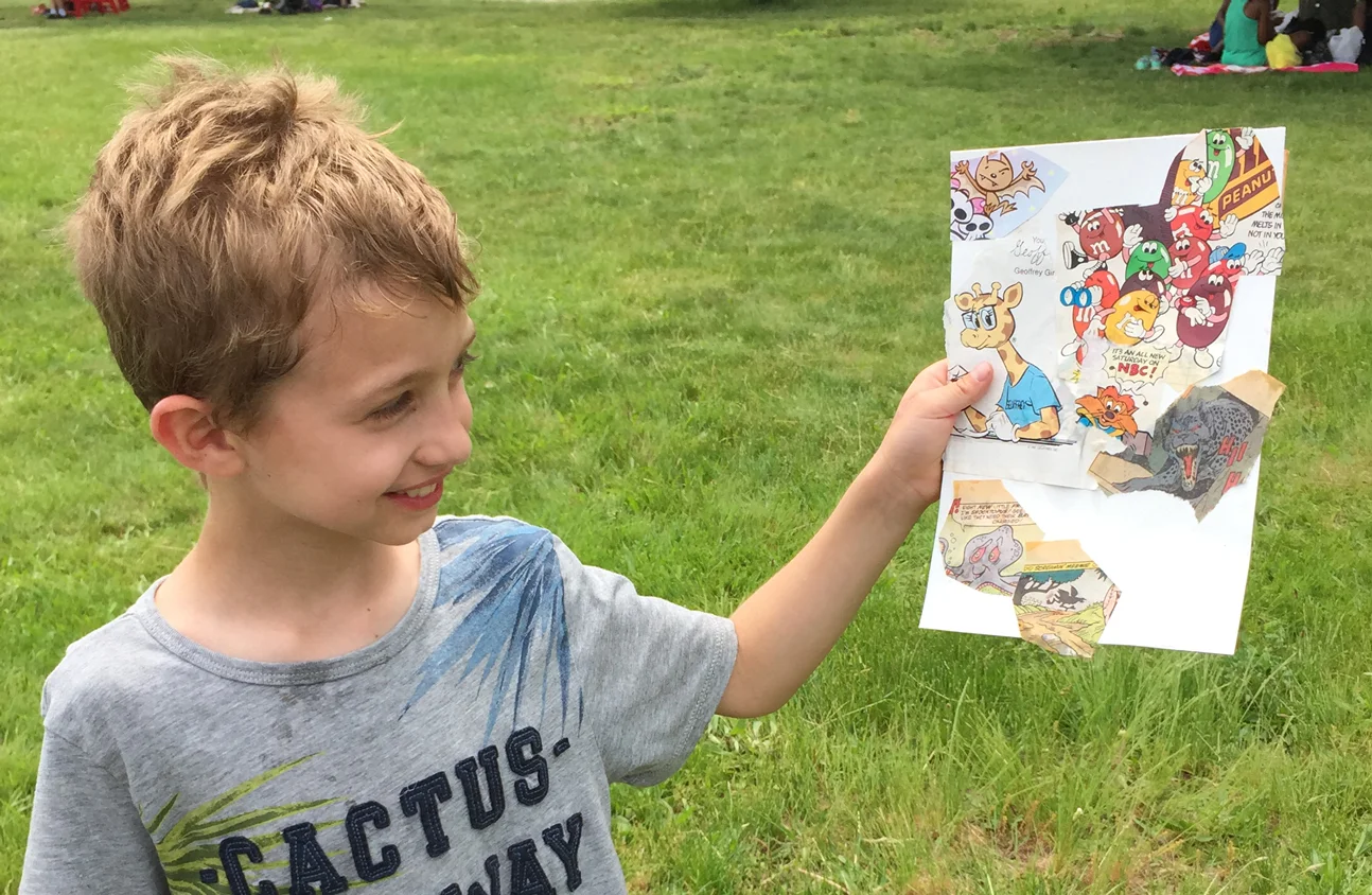 As stated on their website: "Figment’s goal is to advance social and personal transformation through creativity, in the form of free participatory arts events and exhibitions." The art workshop I created at Figment involved participants deconstructing comic books to developed collages of their own themes and stories. They rifled through the hundreds of comics I supplied, selecting the images and words that had an effect on them. Using non-toxic wheatpaste glue they adhered them to paper boards and either took them home or gifted them to others. The driving idea behind this art project was for children to use their abilities to select images in a predetermined narrative and then deconstruct these symbol systems into their own storytelling devices.